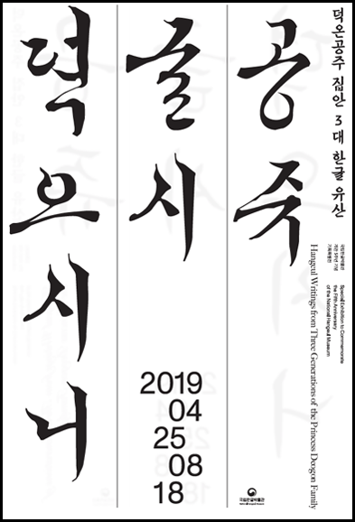 2019년 기획특별전 <공쥬, 글시 뎍으시니: 덕온공주 집안 3대 한글 유산>(2019.4. 25.-8.18.)은 조선의 마지막 공주 덕온 집안의 미공개 한글 유산을 소개하는 두 번째 전시이다. 2016년 <1837년 가을 어느 혼례날>(2016.9.13.-12.18)에서 아들 효명세자, 딸 명온·복온공주, 남편 순조가 연이어 세상을 떠나고 막내딸 덕온공주의 혼례를 홀로 준비하는 순원왕후純元王后(1789-1857)의 애틋한 모정을 볼 수 있었다면 이번 전시에서는 덕온공주德溫公主(1822-1844)와 아들 윤용구尹用求(1853-1939), 손녀 윤백영尹伯榮(1888-1986) 3대가 시공간을 뛰어넘어 한글을 통해 서로 마음을 주고받는 따뜻한 가족 사랑 이야기를 만날 수 있다.