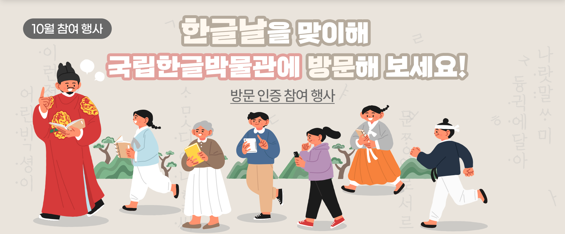 국립한글박물관에 방문한 뒤 인증 사진을 남겨 이번 참여 행사에 응모해 주세요.
